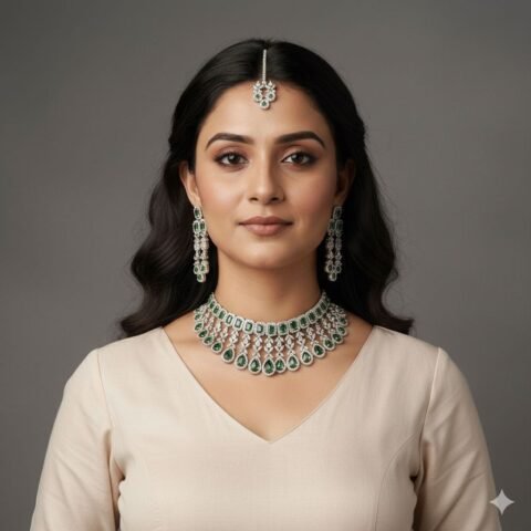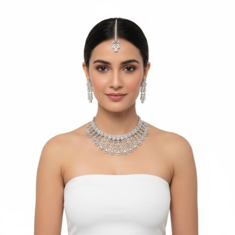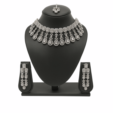 AD Necklace Set for Bride | American Diamond Choker with Earrings – Wedding Jewellery