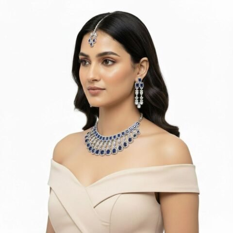 Elegant blue and silver sparkle necklace set