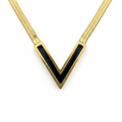18K Gold-Plated Black V-shape Necklace for Women – Waterproof, Anti-Tarnish Jewelry Gift for Her