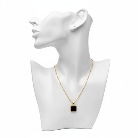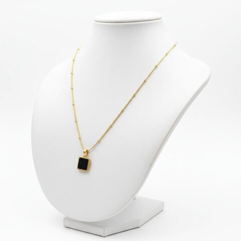 Gold-Plated Black Geometric Pendant Necklace for Women – Anti-Tarnish, Elegant Jewelry